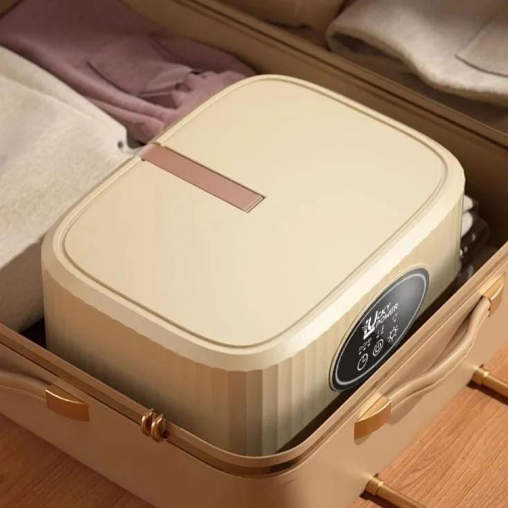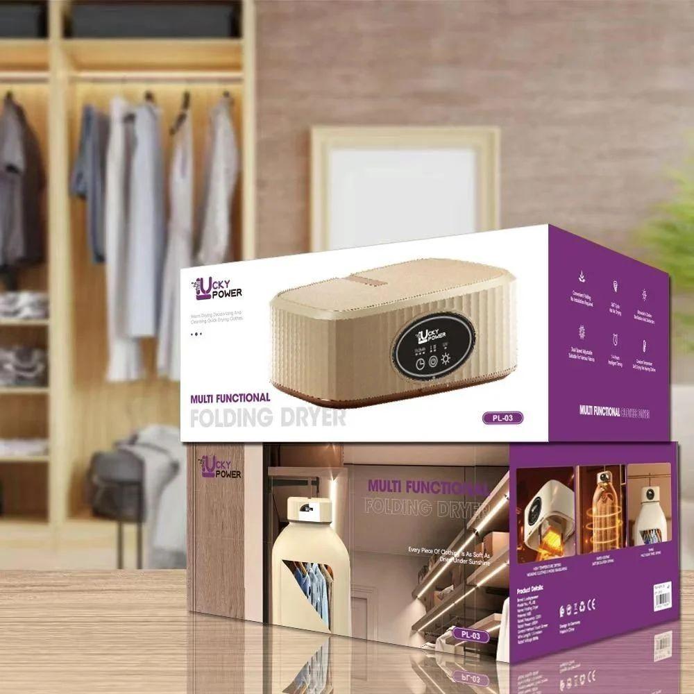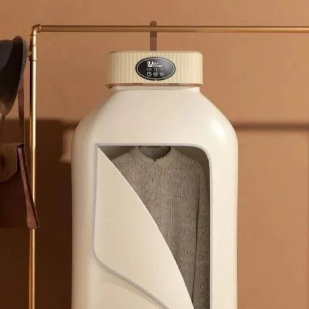مجفف ملابس كهربائي صغير قابل للطي، مصمم لتجفيف الملابس بسرعة دون الحاجة إلى مساحة كبيرة. يحتوي على لوحة تحكم رقمية تتيح ضبط الوقت ، بما في ذلك تعقيم الملابس بالأشعة فوق البنفسجية.