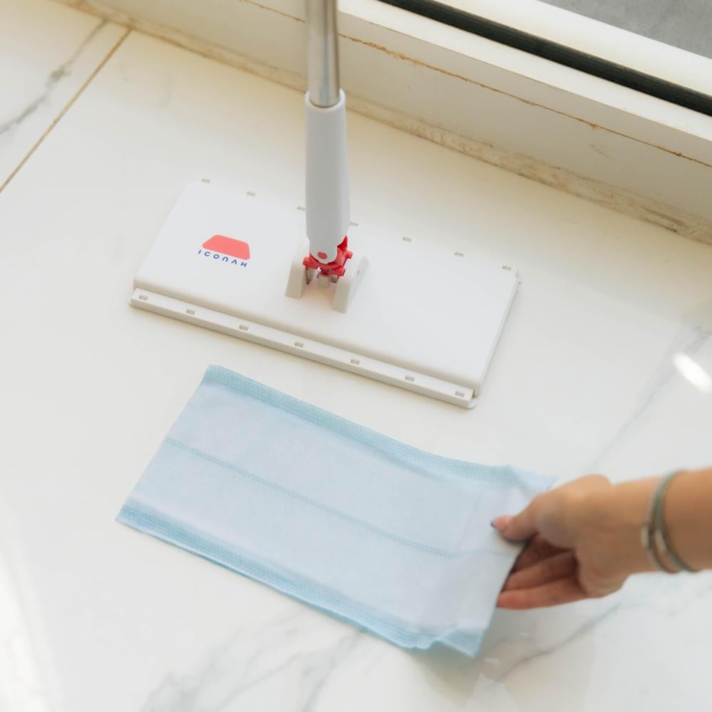 ارتقِ بنظافة منزلك مع مناديل “ايقونة” المبللة المصممة خصيصًا لممسحة أيقونة.